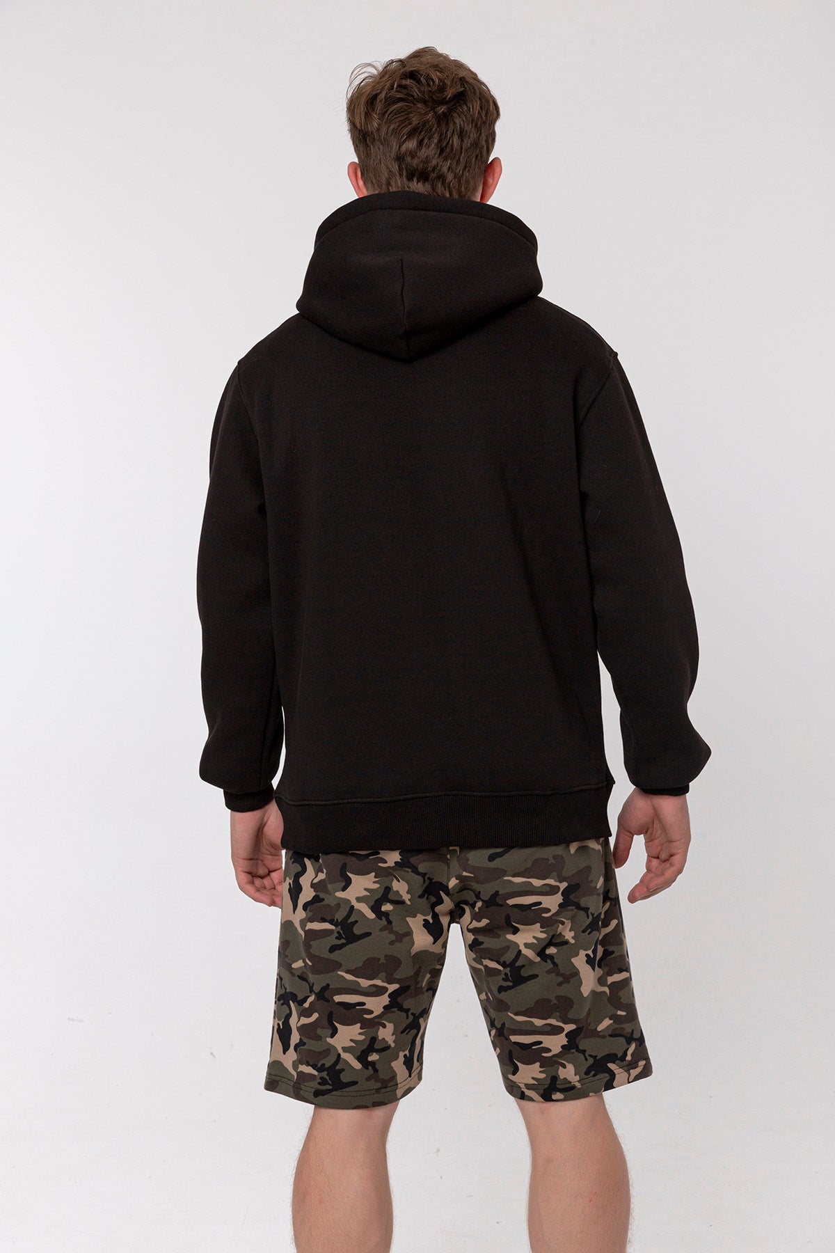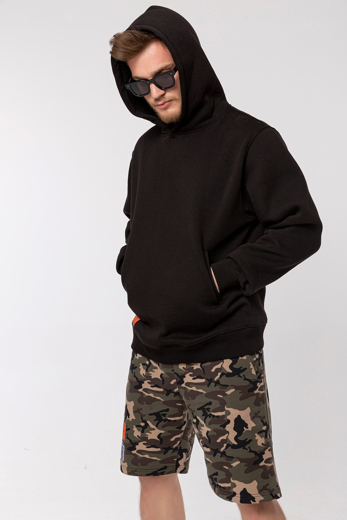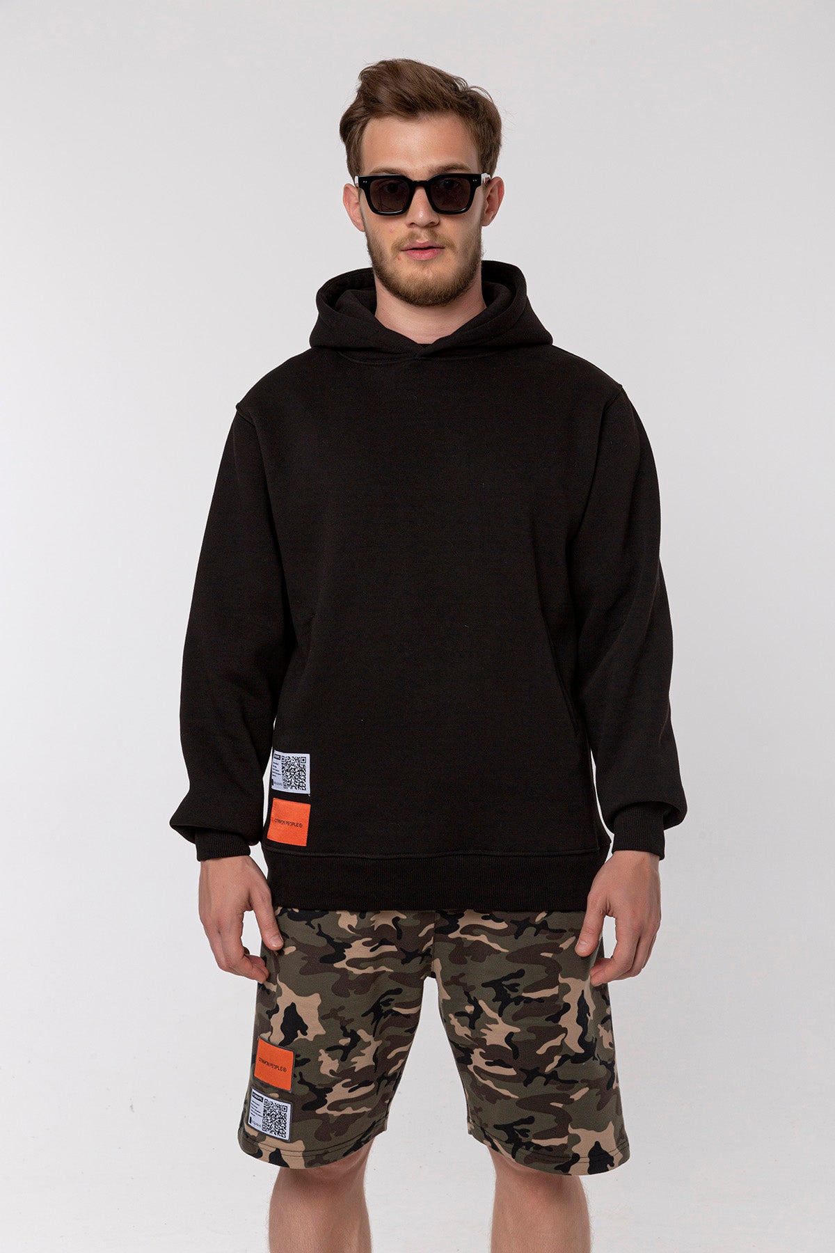 Erkek Model’in boyu 183 cm ve üzerindeki Hoodie Bedeni: M