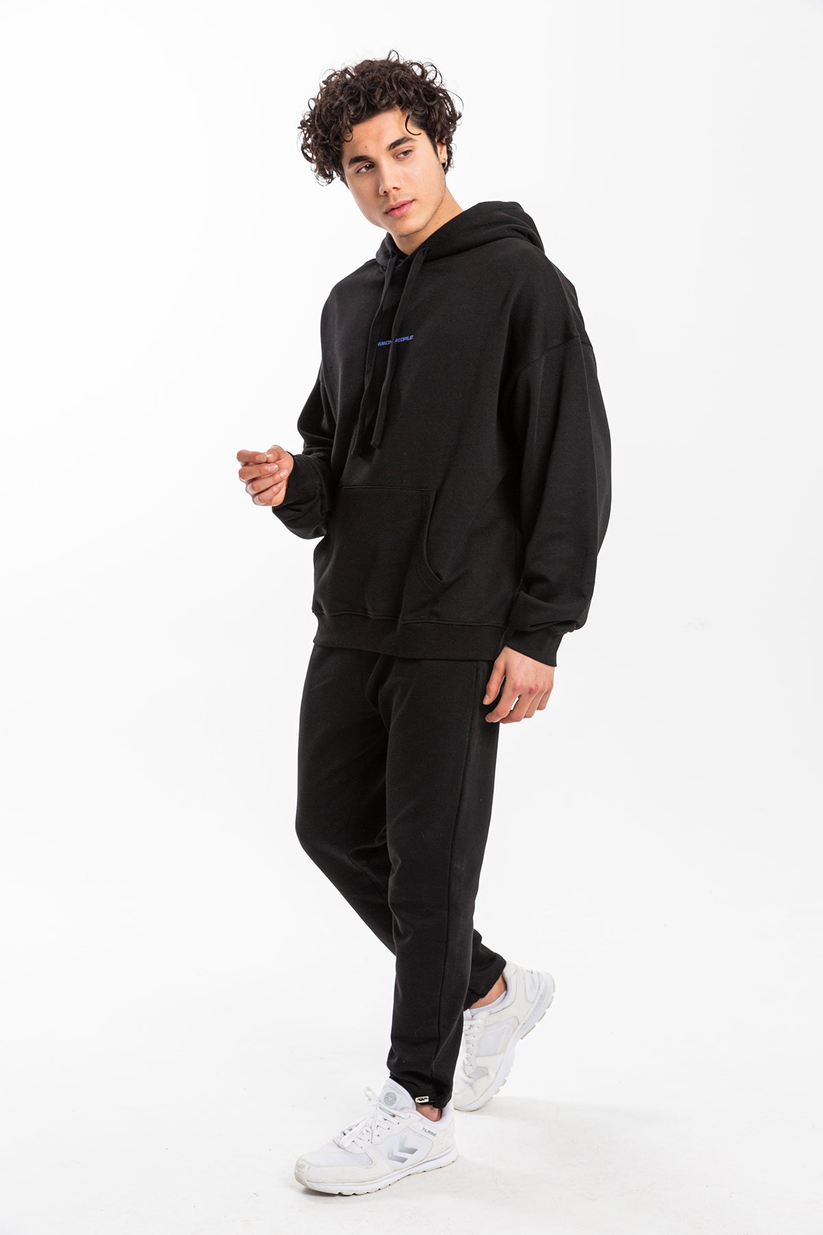 Erkek Model’in boyu 189 cm ve üzerindeki Hoodie Bedeni: L