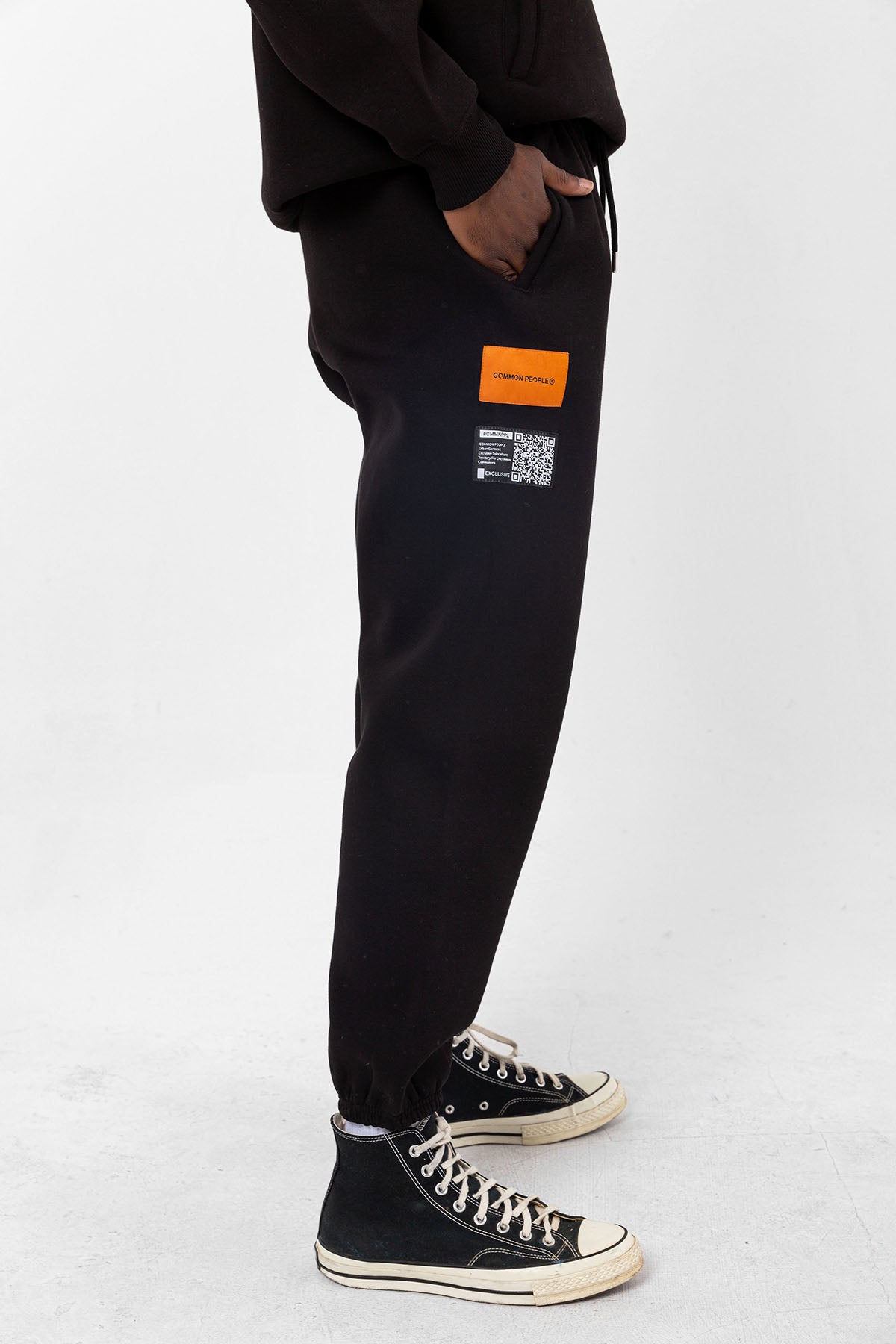Common People Siyah Eşofman Altı, özel üretim yumuşacık kumaşıyla hem çok rahat hem de sıcacık. Unisex kalıbı, yan cepleri, lastikli ve iple ayarlanabilen bel yapısının yanısıra yan tarafta yer alan çift dokuma etiketiyle de cool bir duruşa sahip.