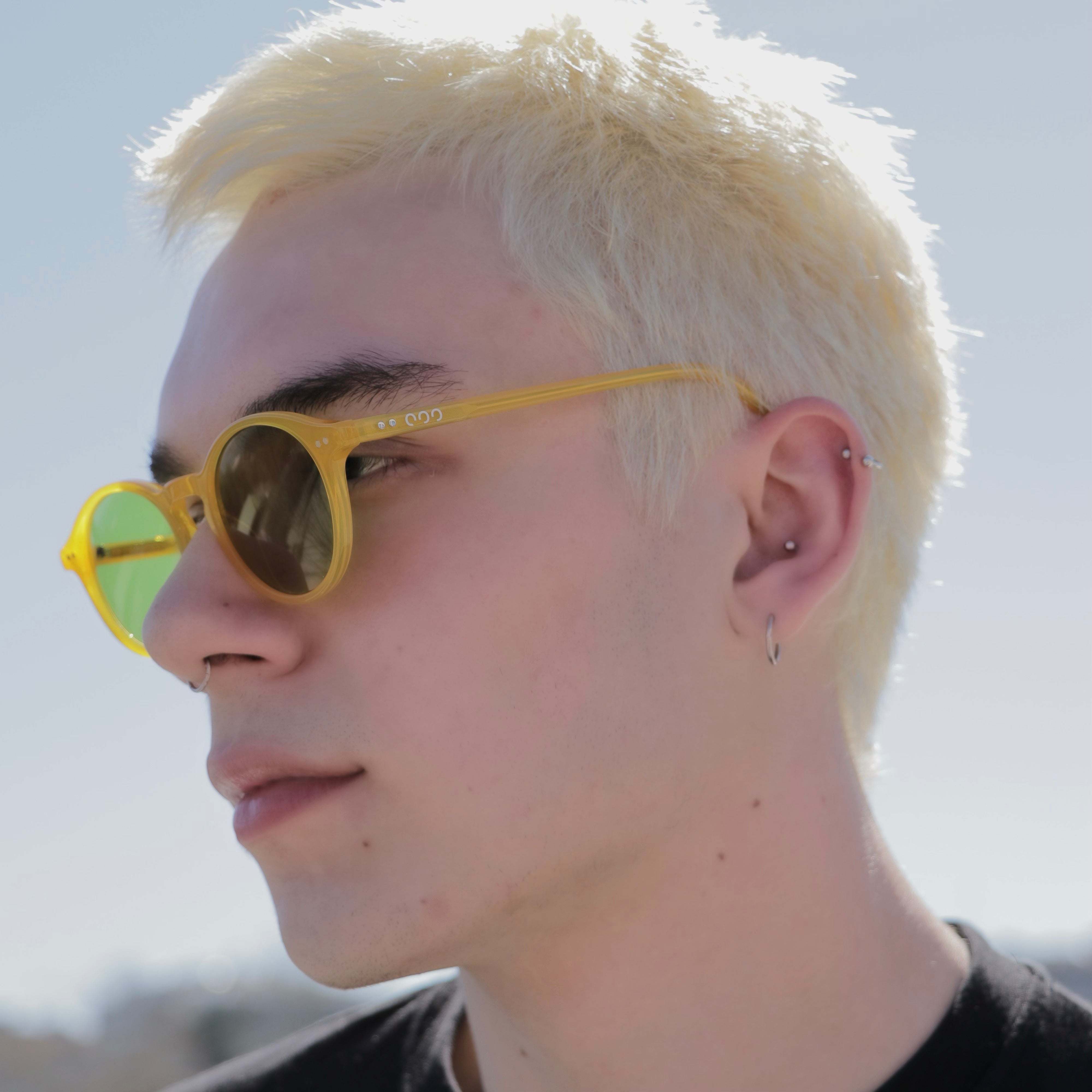İtalya'da üretilen ve el yapımı olan Jamie güneş gözlüğümüz kemik çerçeve ve organik camlara sahip.