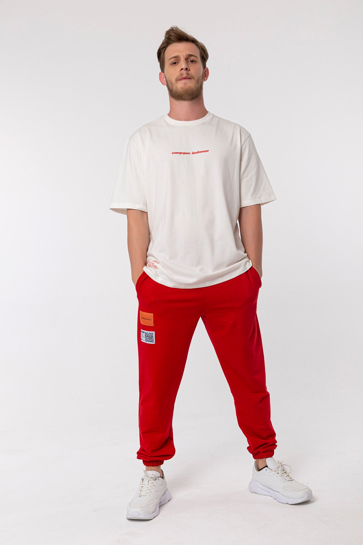 Bol Kesim - Dökümlü Eşofman Altı - Beyaz