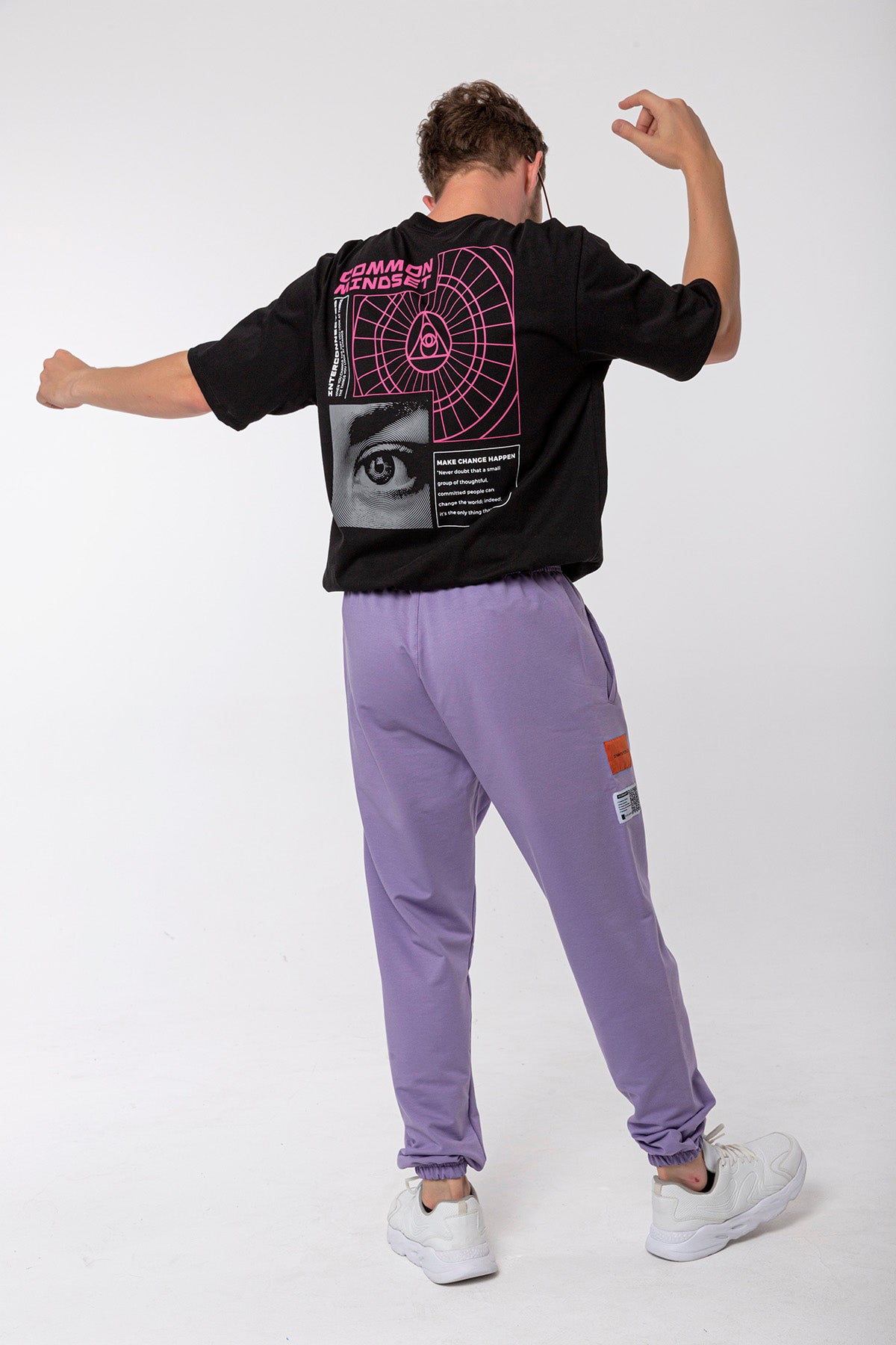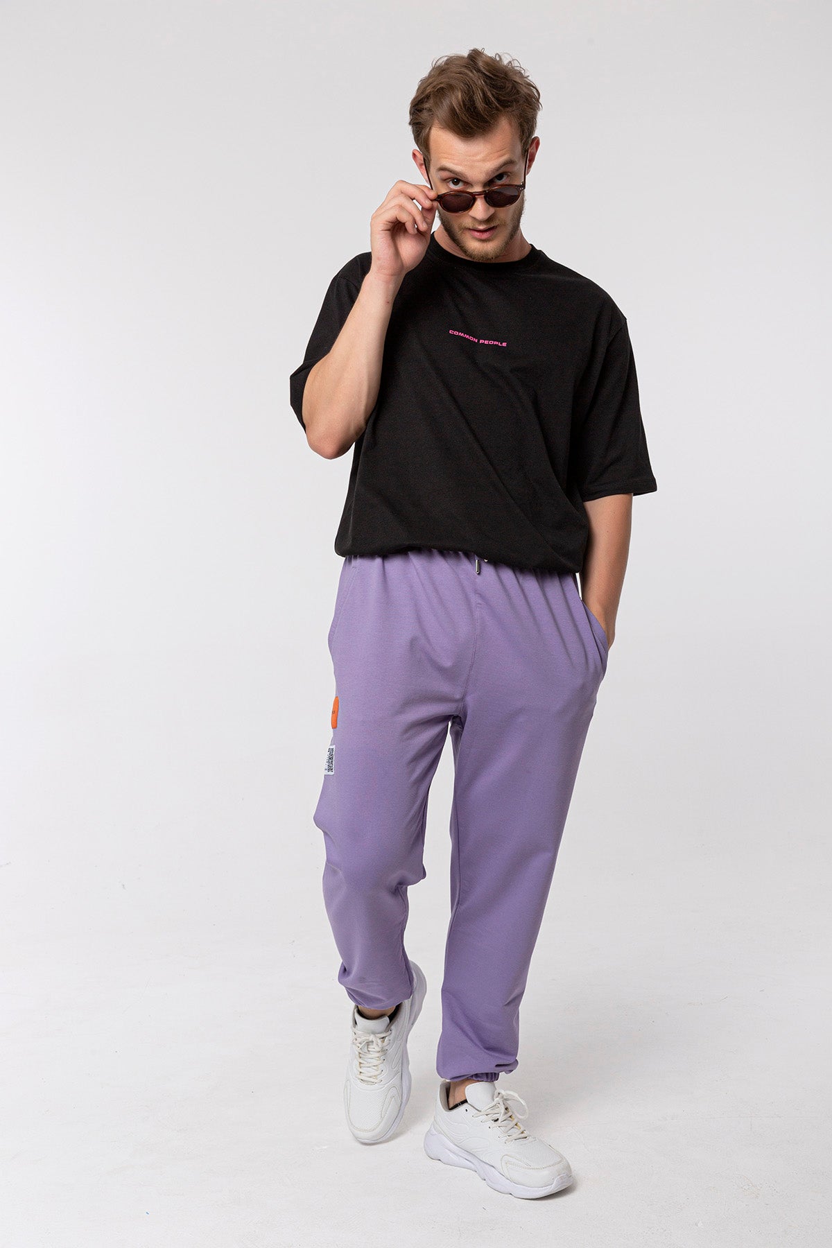 Bol Kesim Dökümlü Eşofman Altı - Siyah