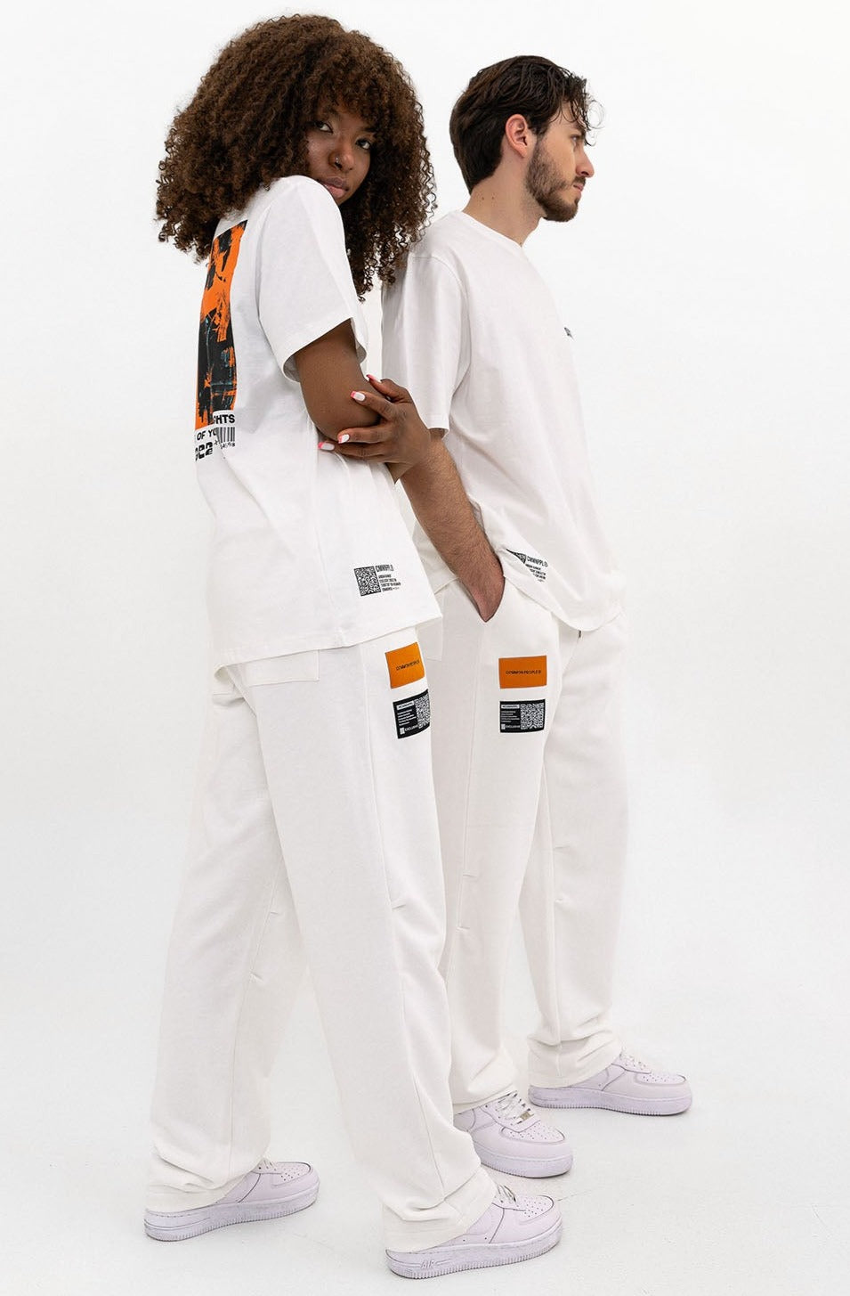Bol Kesim - Dökümlü Eşofman Altı - Beyaz