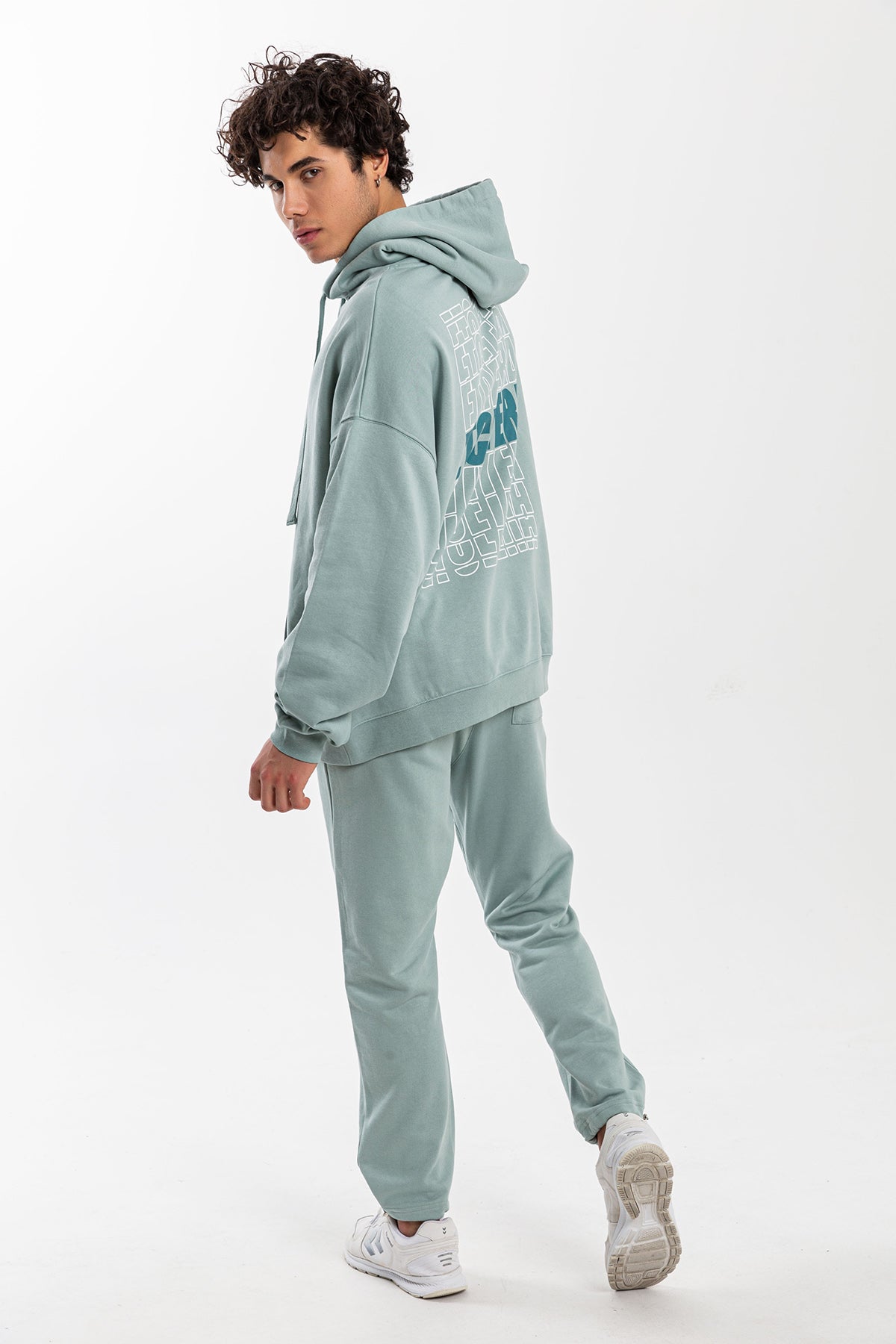 Erkek Model’in boyu 189 cm ve üzerindeki Hoodie Bedeni: L