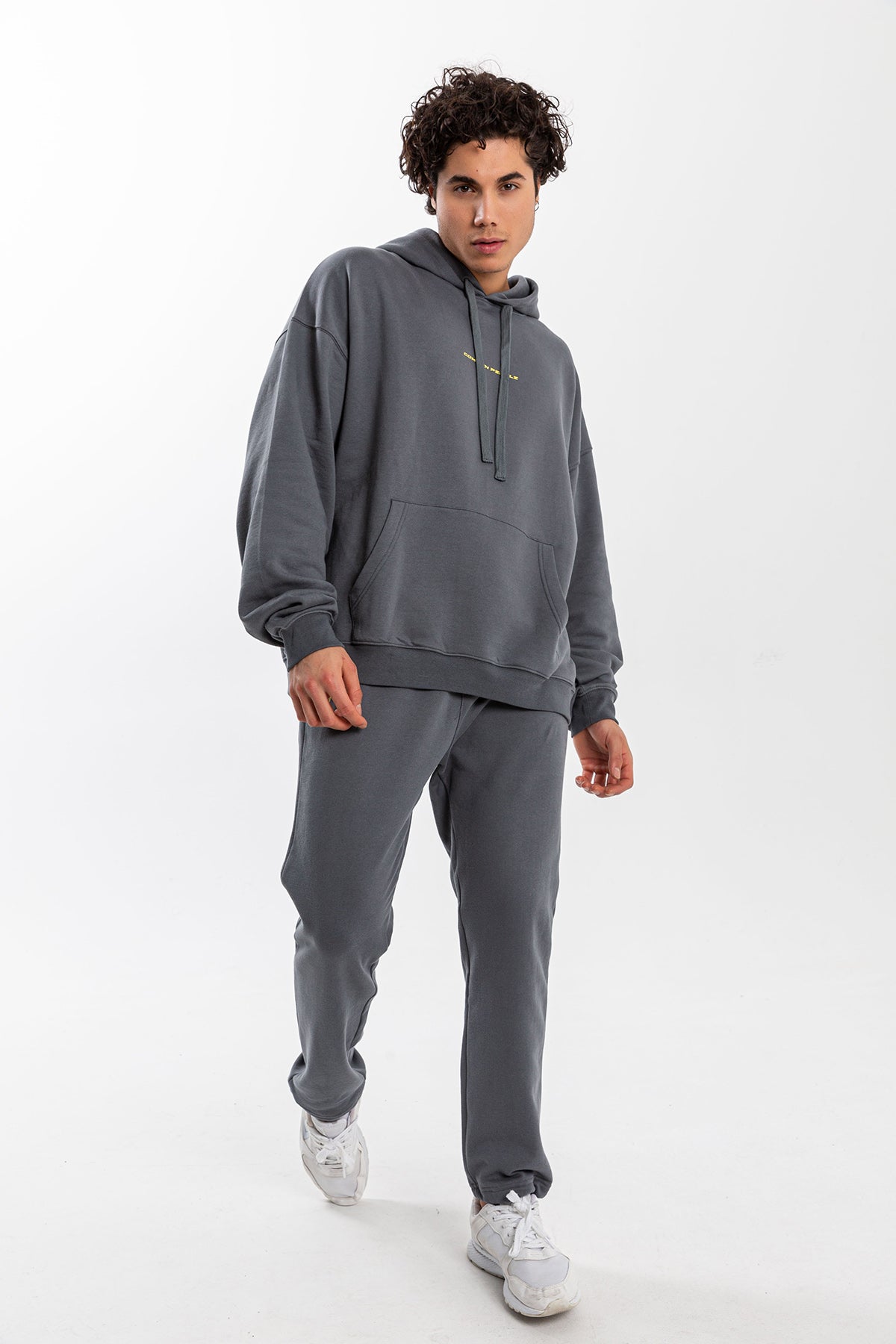 Erkek Model’in boyu 189 cm ve üzerindeki Hoodie Bedeni: L