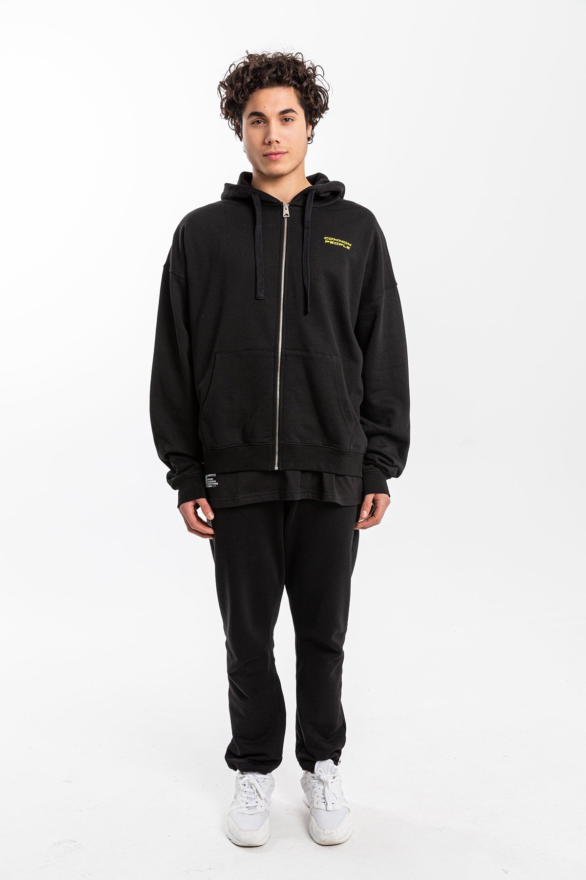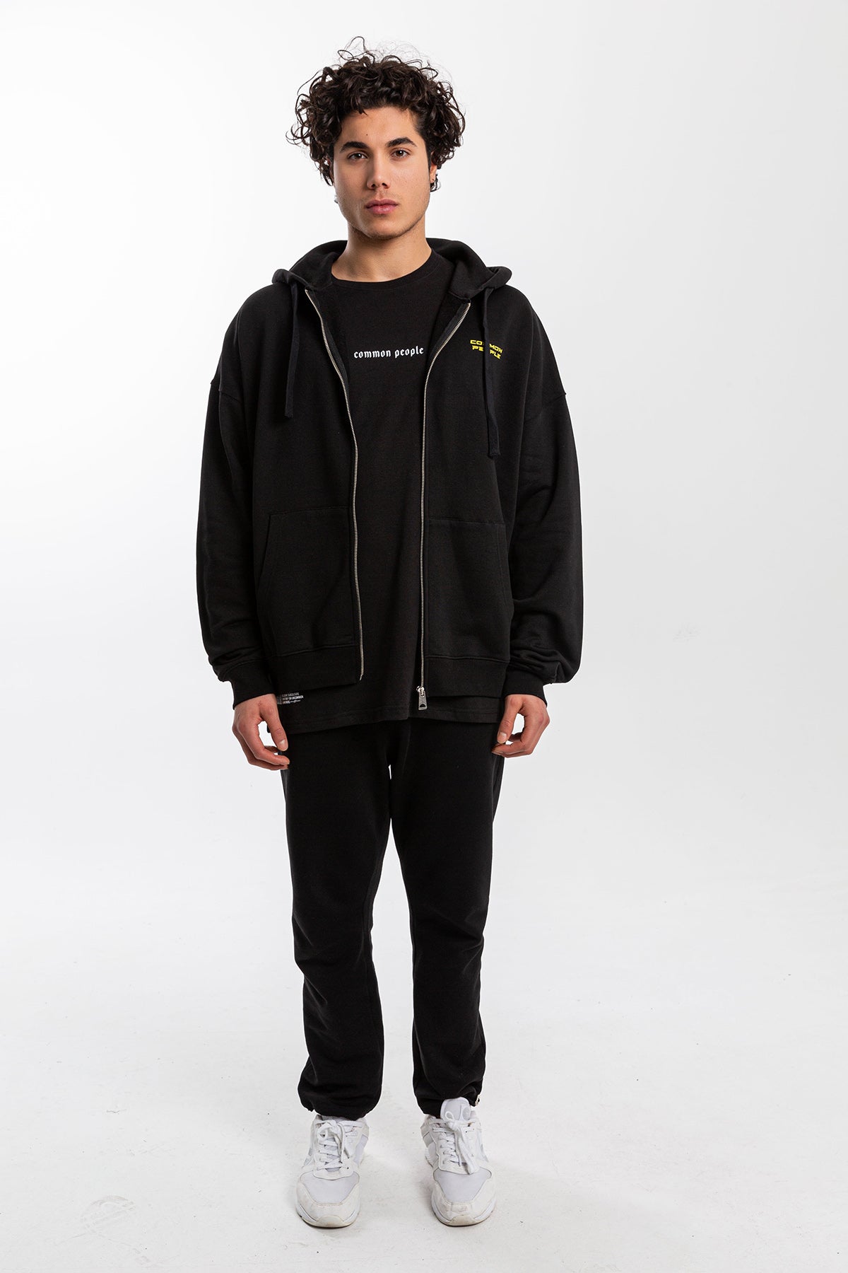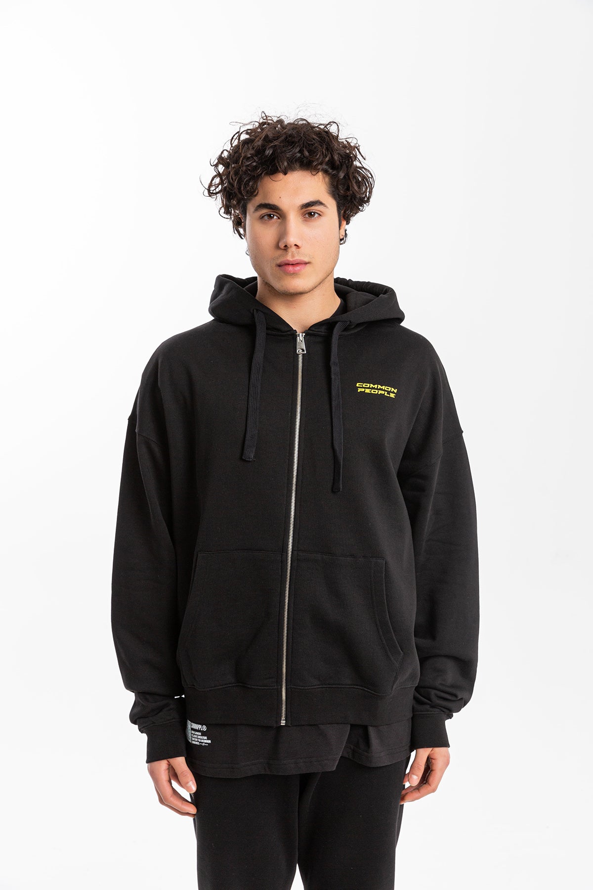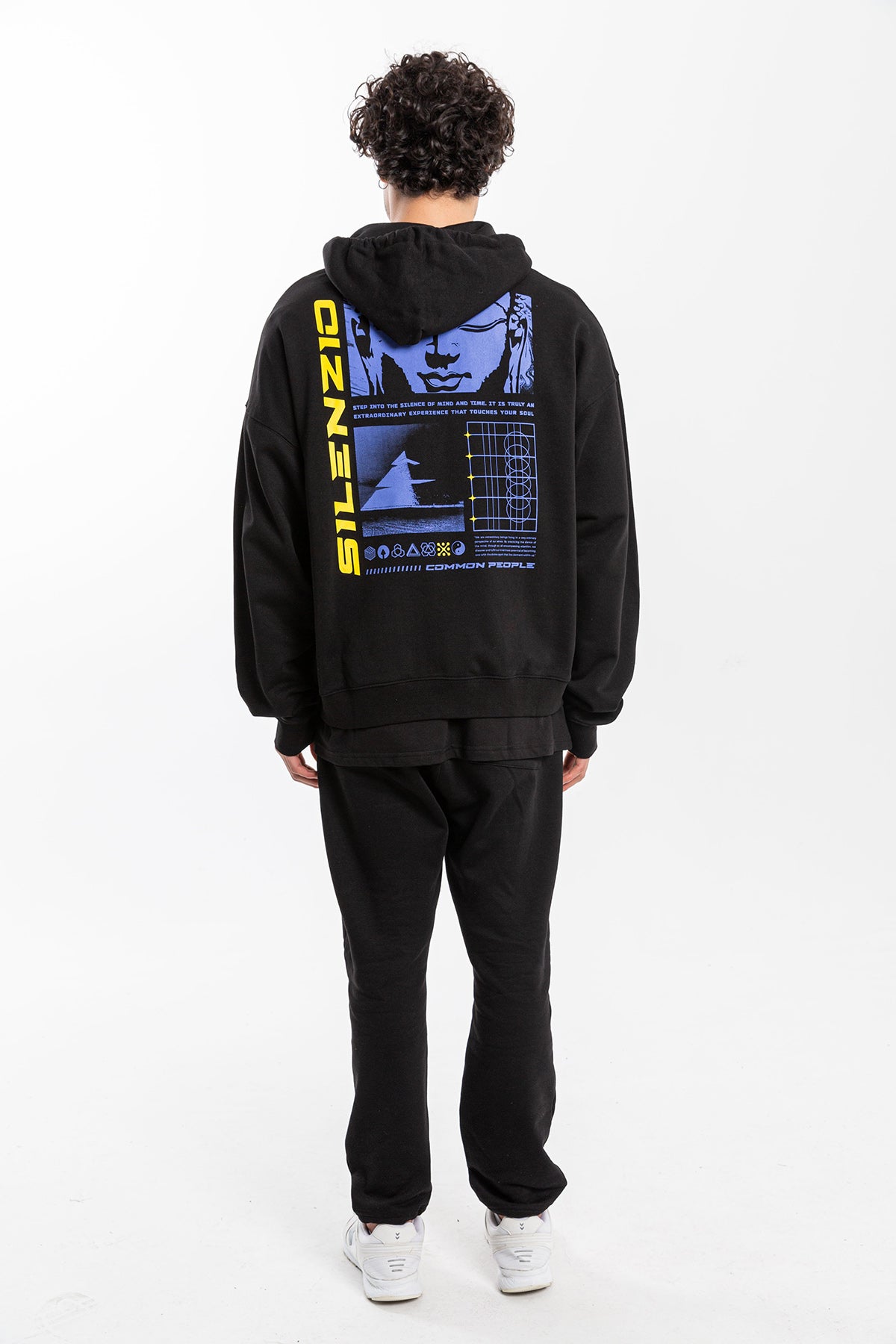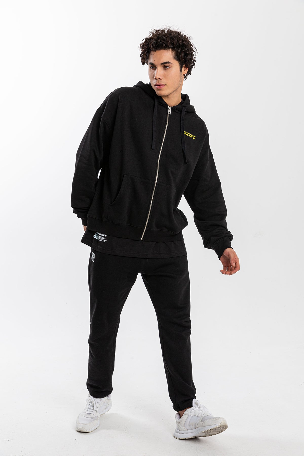Silenzio Siyah Fermuarlı Oversize Hoodie
