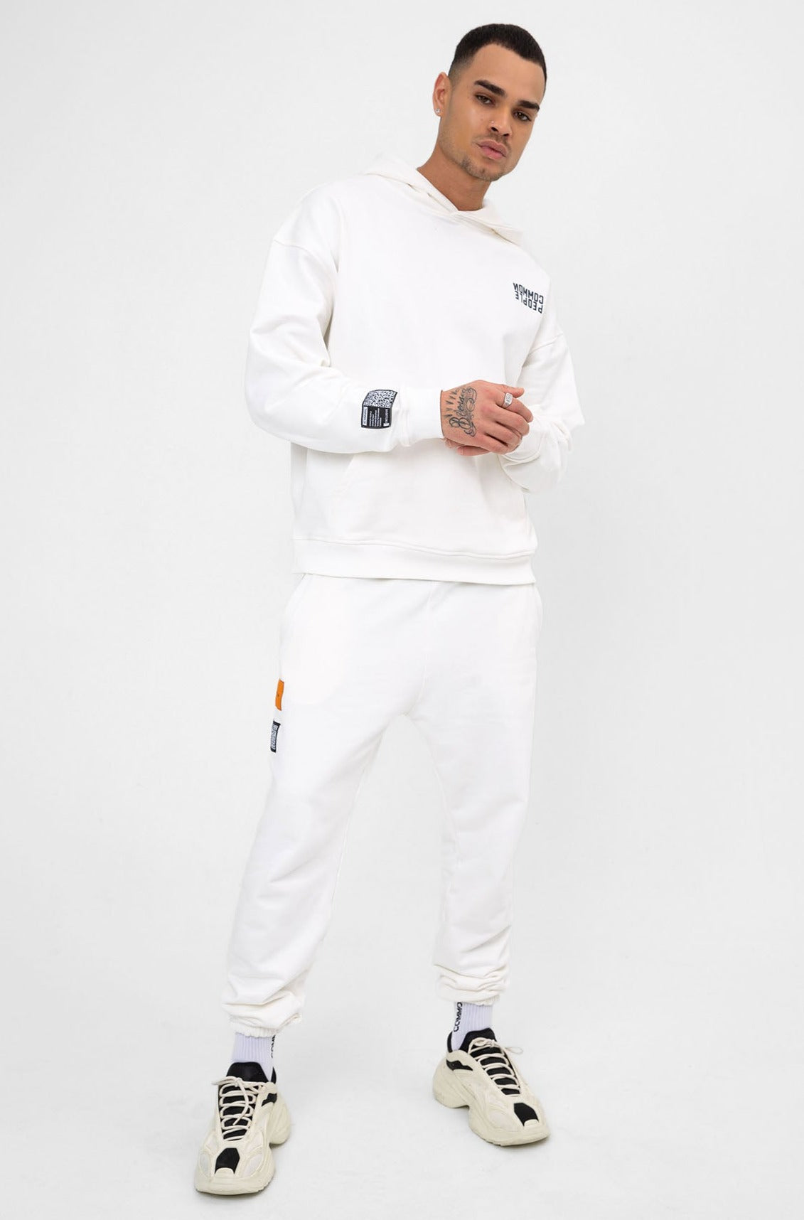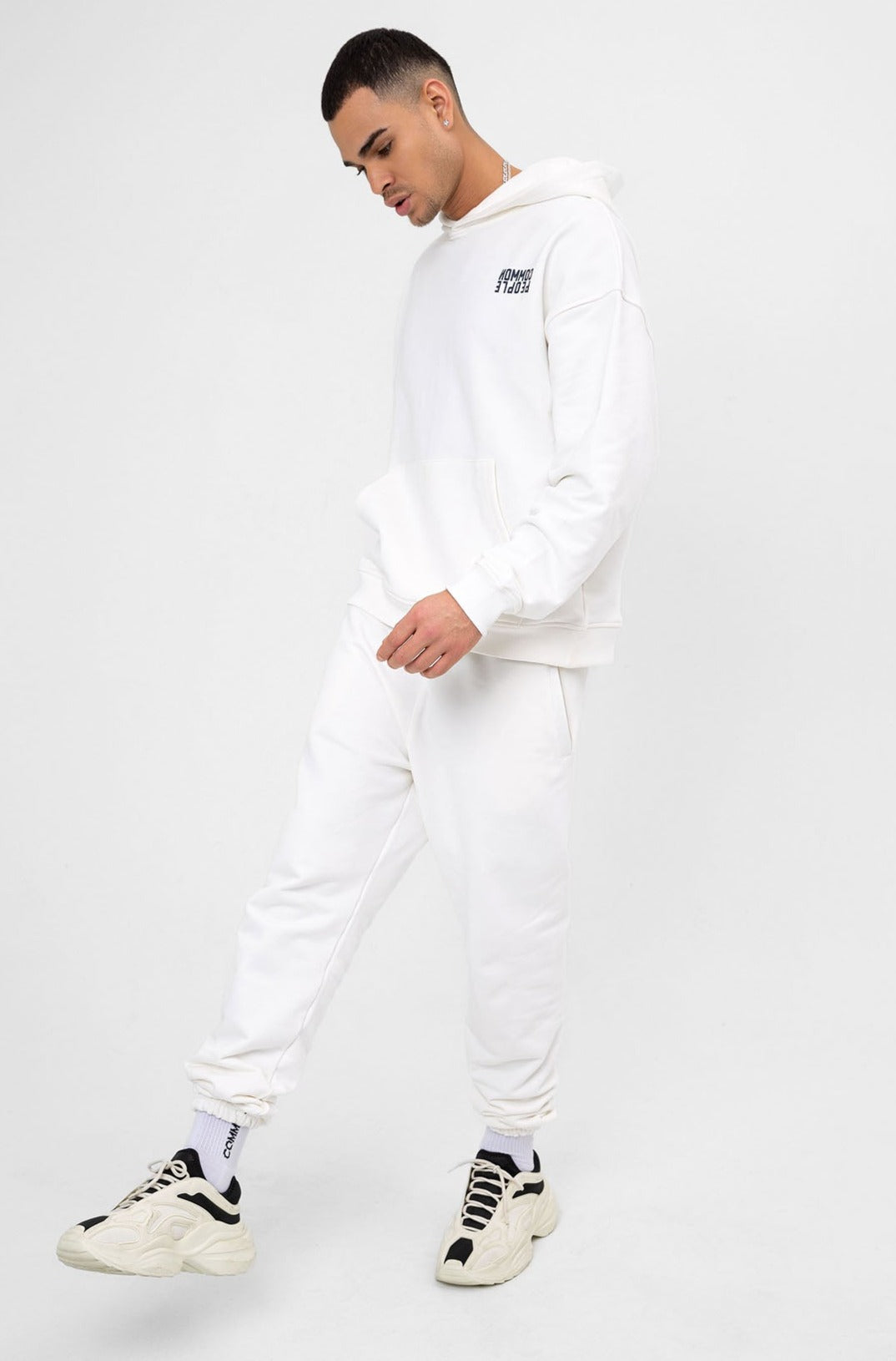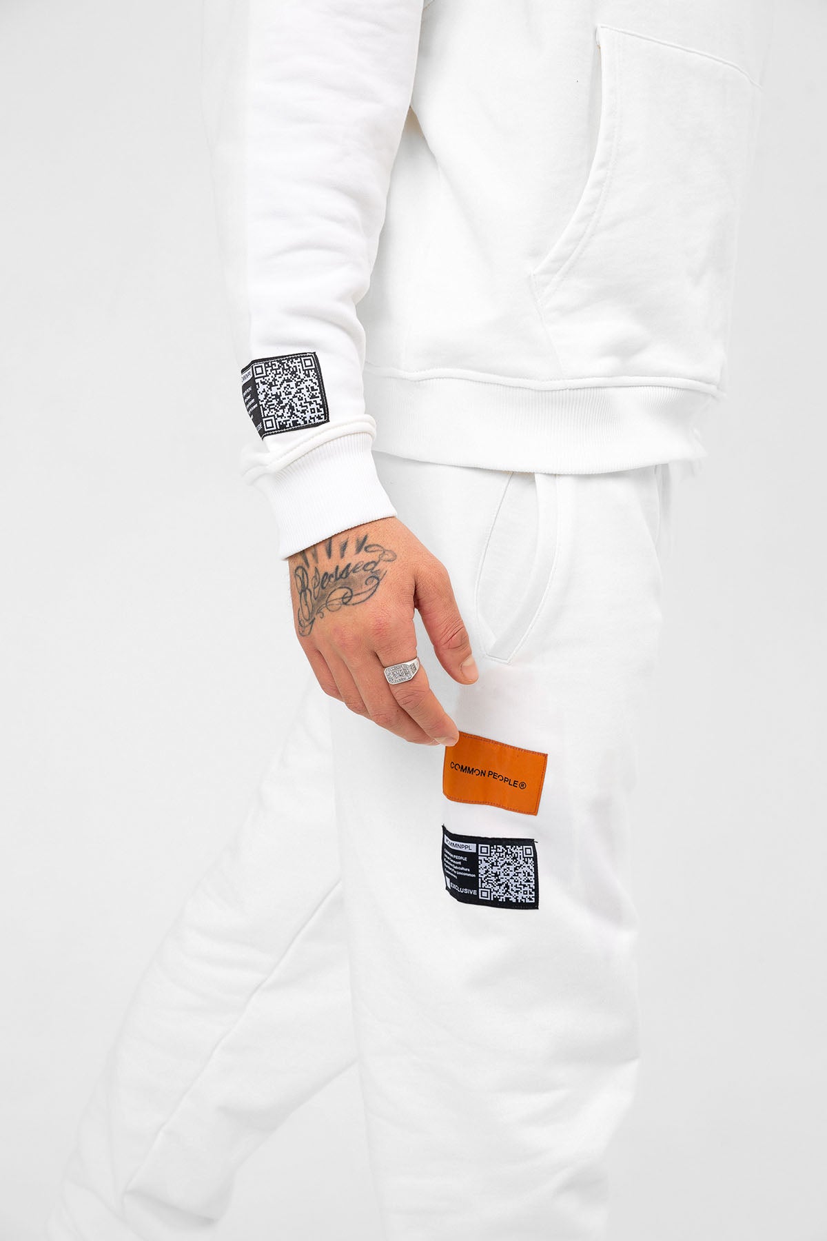 Common People Beyaz Eşofman Altı, özel üretim yumuşacık kumaşıyla hem çok rahat hem de sıcacık. Unisex kalıbı, yan cepleri, lastikli ve iple ayarlanabilen bel yapısının yanısıra yan tarafta yer alan çift dokuma etiketiyle de cool bir duruşa sahip.