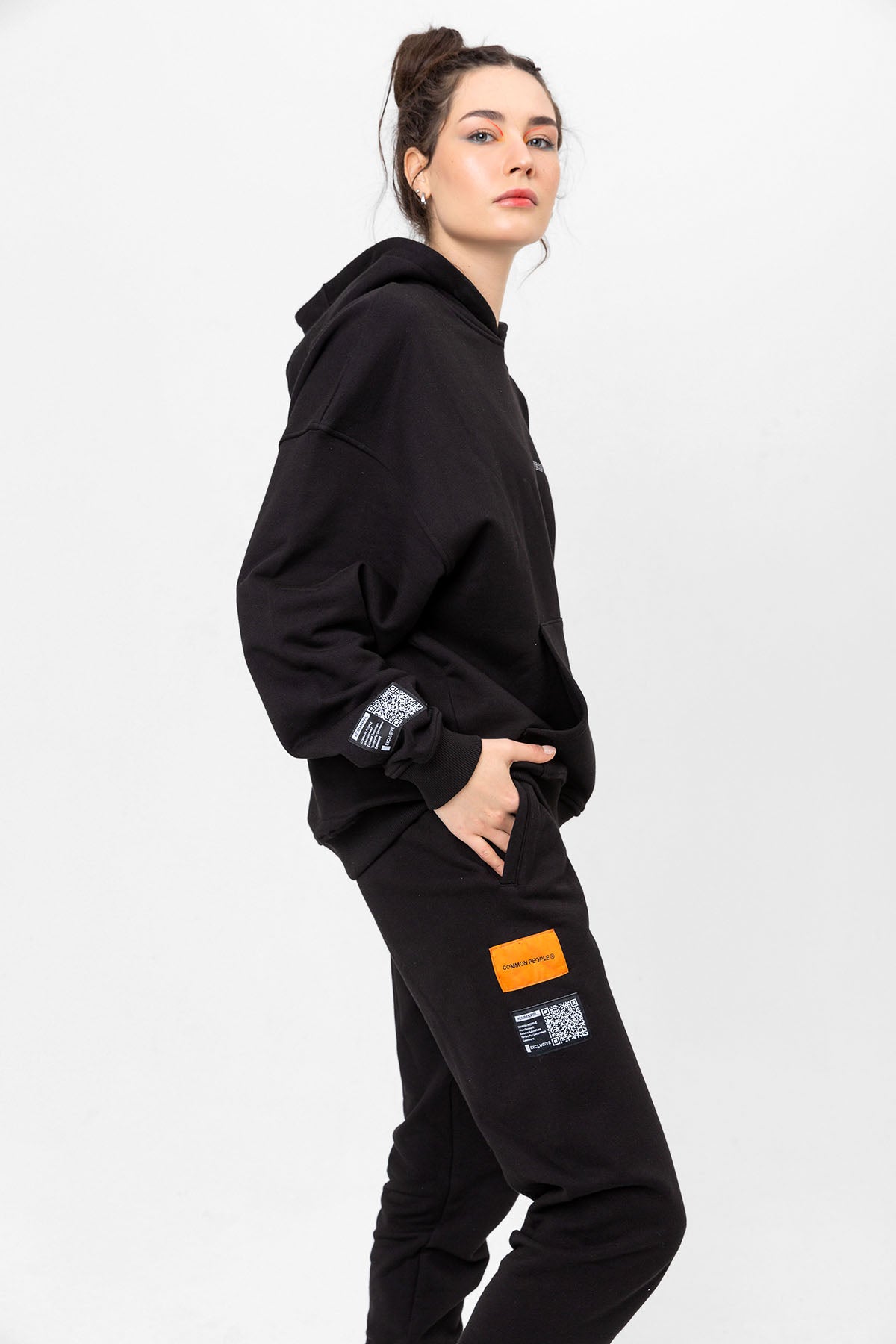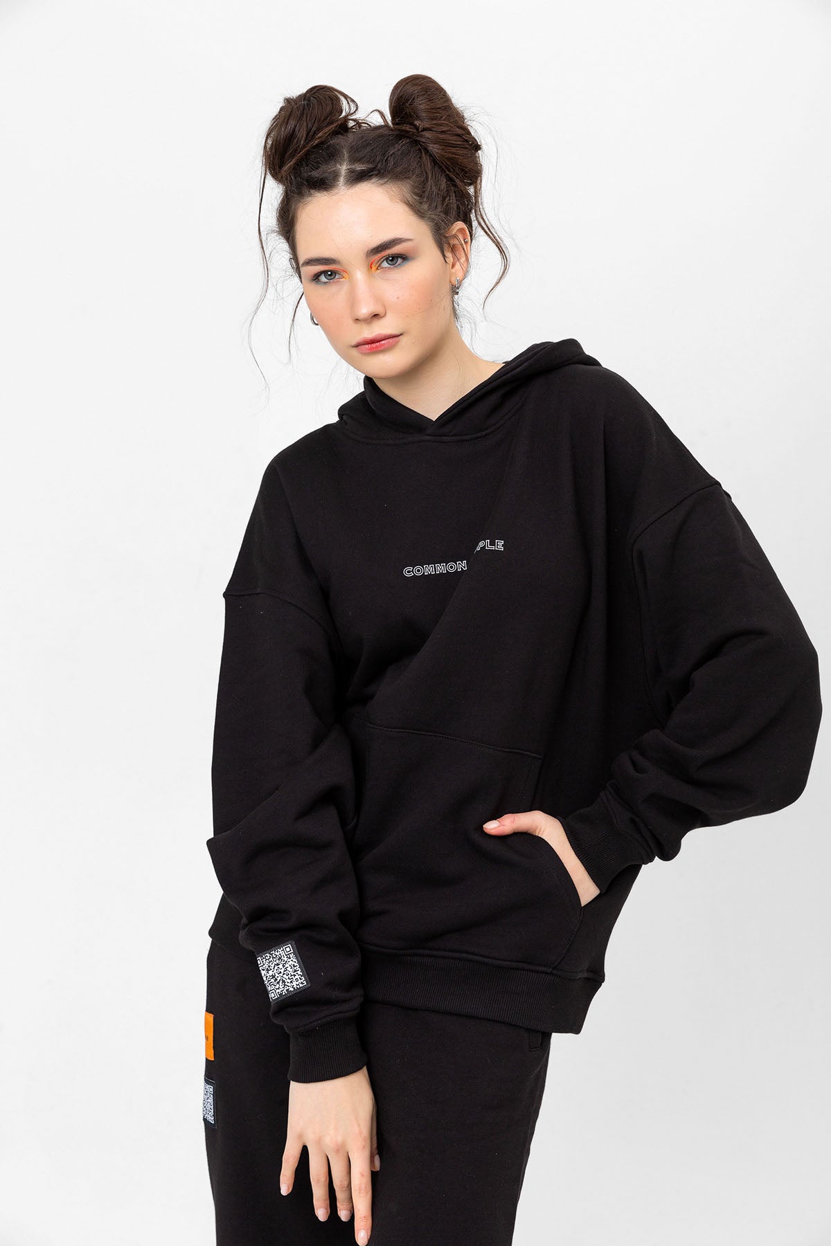 Kadın Model’in boyu 178 cm ve üzerindeki Hoodie Bedeni: M