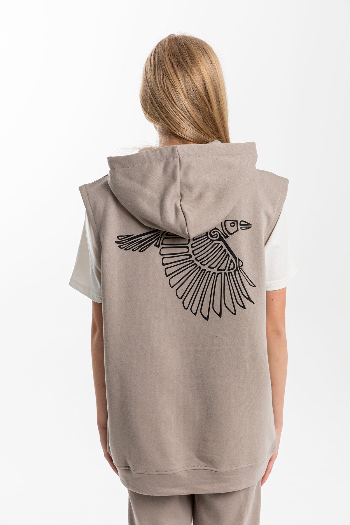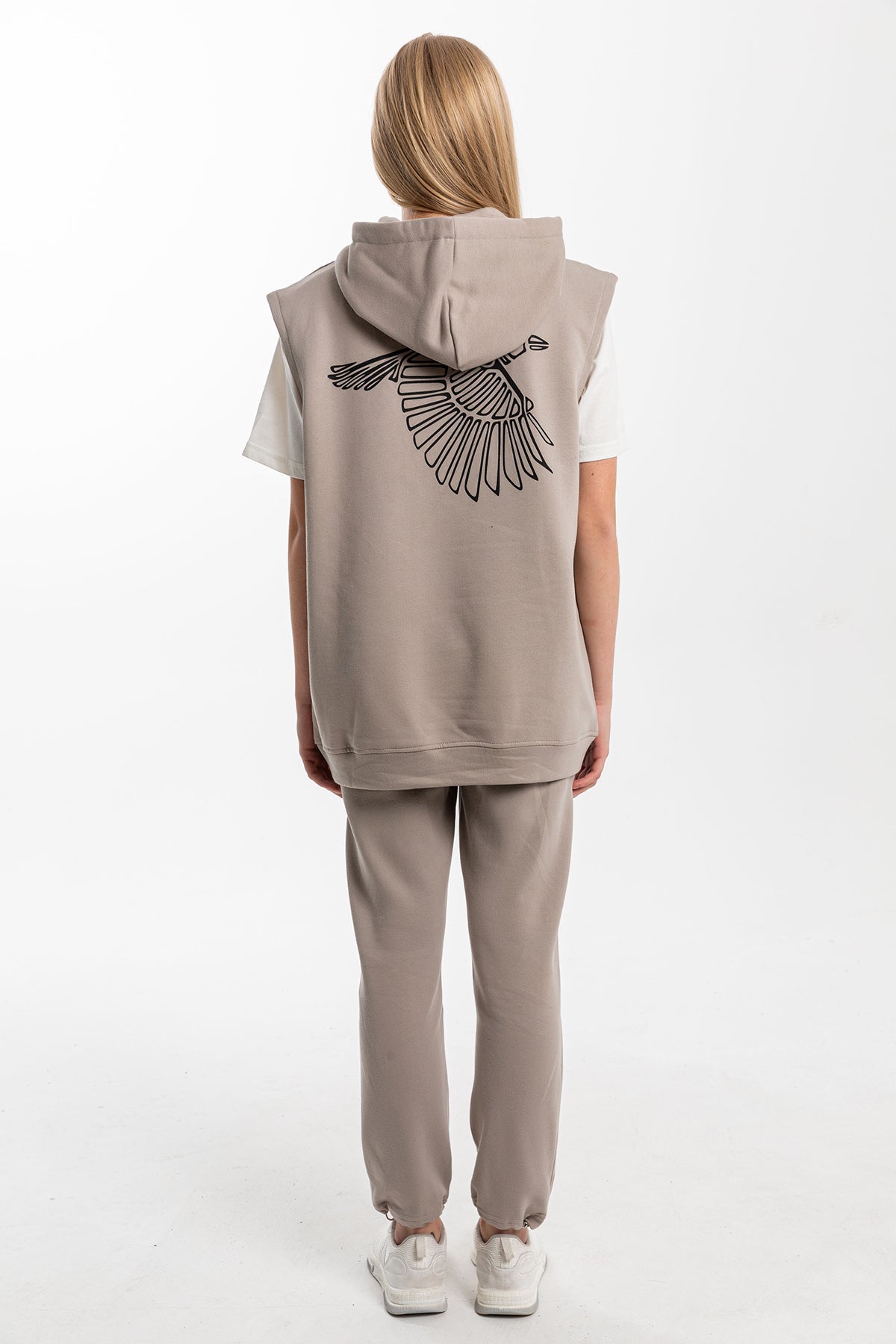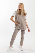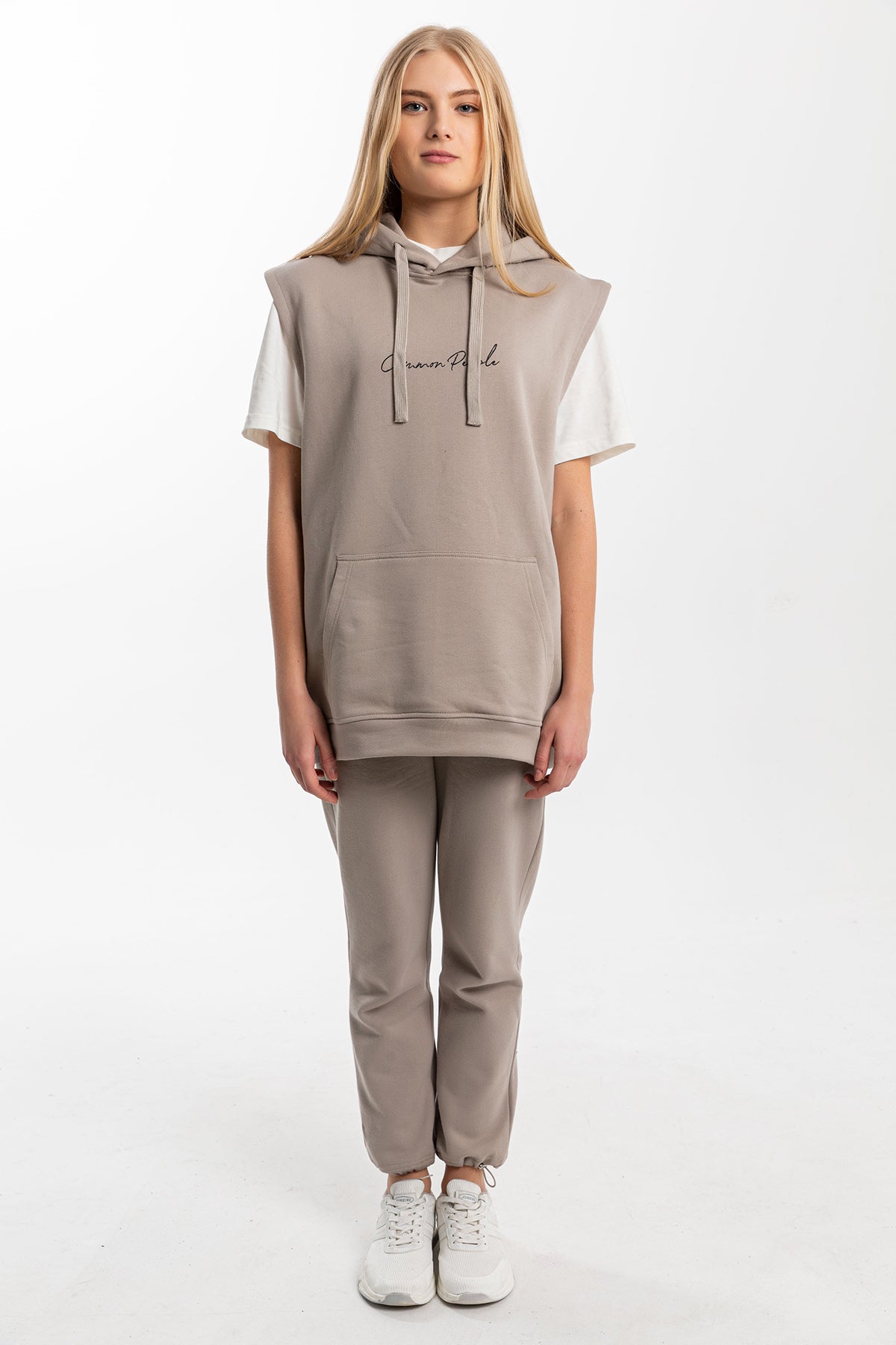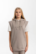 Oversize Buzlu-Kahve Kolsuz Hoodie