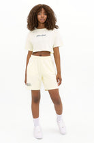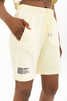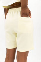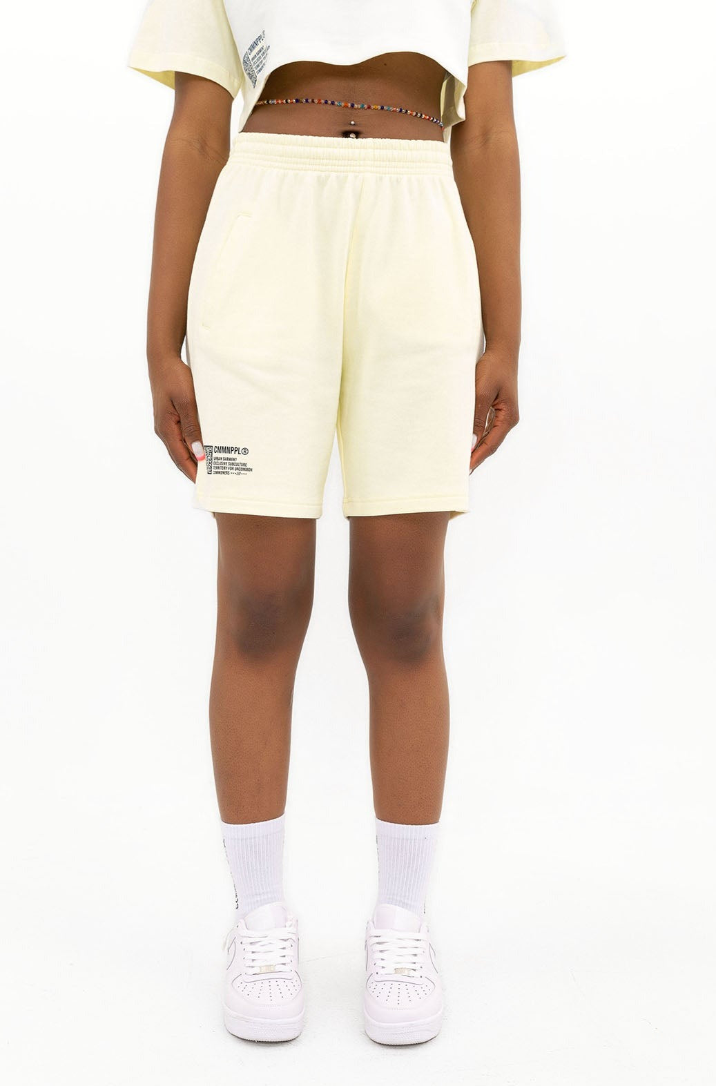 Common People İlkbahar & Yaz Koleksiyonundan Sarı Unisex Örme Şort... Her vücut yapısına uyan kalıbı, yan cepleri, lastikli ve iple ayarlanabilen bel yapısının yanısıra çift dokuma etiket detayıyla da cool bir duruşa sahip.