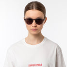 İtalya'da üretilen ve el yapımı olan Jamie güneş gözlüğümüz kemik çerçeve ve organik camlara sahip.