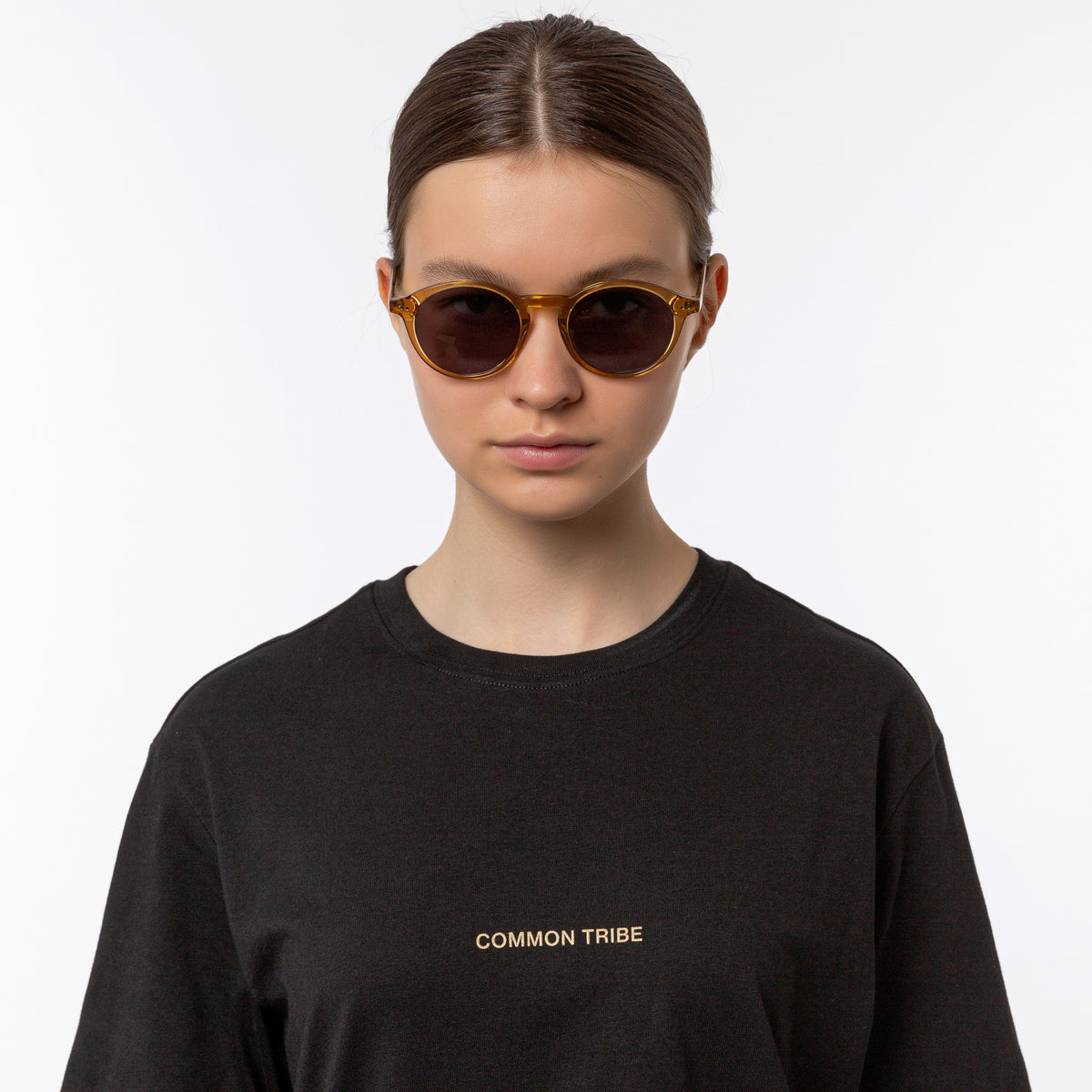 İtalya'da üretilen ve el yapımı olan Jamie güneş gözlüğümüz kemik çerçeve ve organik camlara sahip.